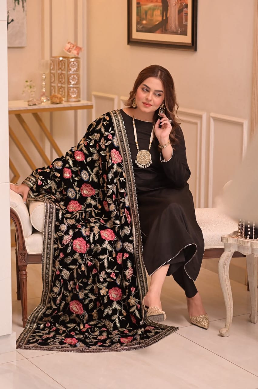 Anelas unstitched velvat shawl 3pc